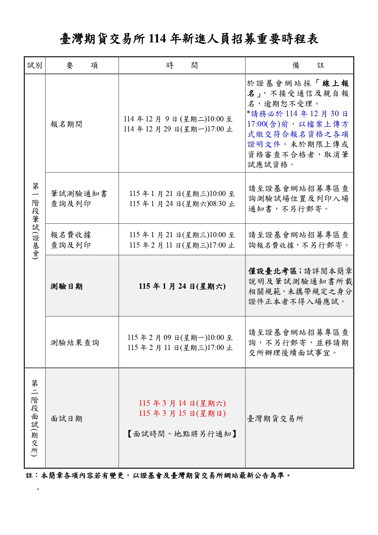 重要時程表